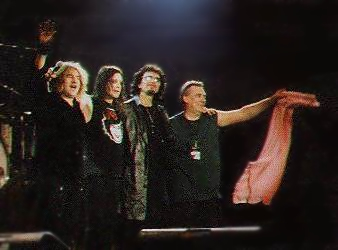 Black Sabbath on stage at Schleyerhalle in Stuttgart, Germany. "Reunion Tour". From left to right: Geezer Butler, Ozzy Osbourne, Tony Iommi, Bill Ward |