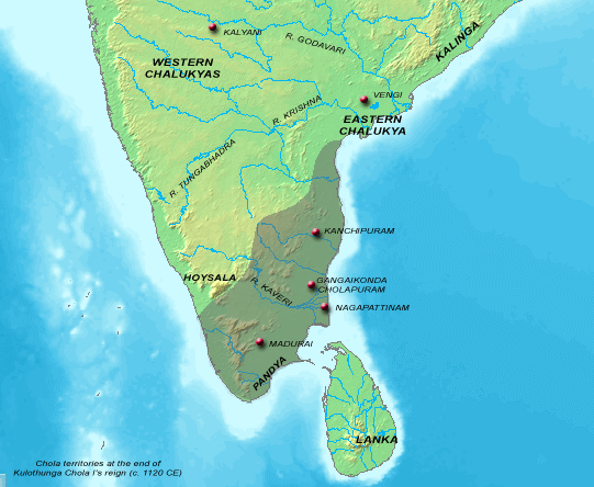 == Summary == Map showing the extent of the Chola empire during Kulothunga Chola I. Modified by myself using Adobe Photoshop |