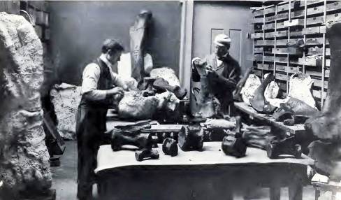 Elmer Riggs and H.W. Menke working on Brachiosaurus altithorax bones back in Chicago, courtesy The Field Museum in Chicago