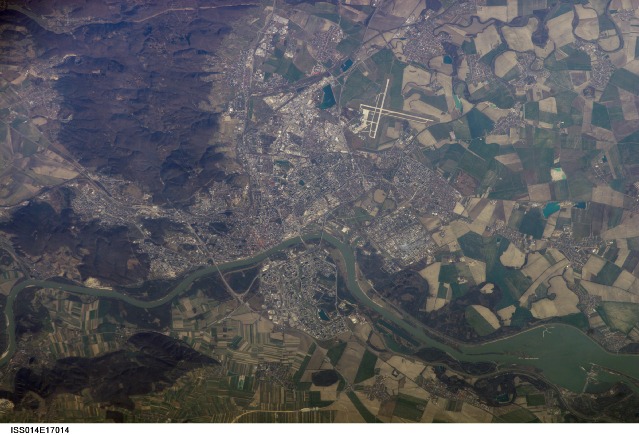 English: Astronaut Photo of Bratislava, Slovakia taken from the International Space Station (ISS) during Expedition 14 on March 13, 2007.