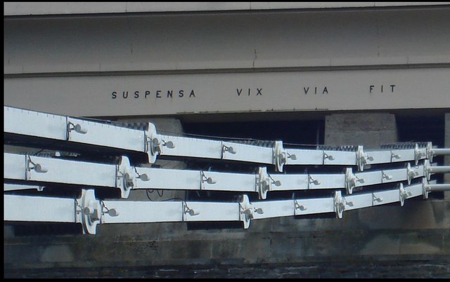 English: Inscription on Clifton Suspension Bridge: SUSPENSA VIX VIA FIT ("The road becomes scarcely suspended")