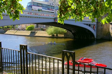 English: River Ouse and Lendal Bridge from Riverside Walkway.