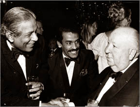 Anton Wickremasinghe, Chandran Rutnam and Alfred Hitchcock at the Academy Awards in Los Angeles.