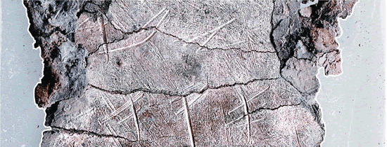 Portion of writing on silver scroll with the "Priestly Benediction" (Numbers 6:24-26) in which the tetragrammaton can be seen. Earliest depiction of the tetragrammaton - dated around 600 B.C.E.