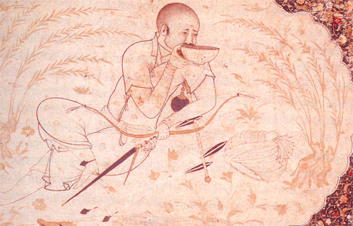 The il-Khan Hulagu rests. From a medieval manuscript in the British Museum. See Morgan, David, The Mongols, for a copy of the print and details of its exact location and date.