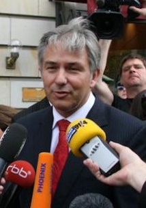 English: Mayor Klaus Wowereit in an interview in front of the Adlon Hotel in Berlin.