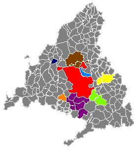 Español: Áreas metropolitanas dentro del área metropolitana de Madrid.