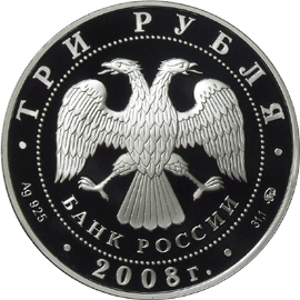 Русский: Монета Банка России — Серия: «Россия во всемирном культурном и природном наследии ЮНЕСКО», Вулканы Камчатки, 3 рубля, аверс.