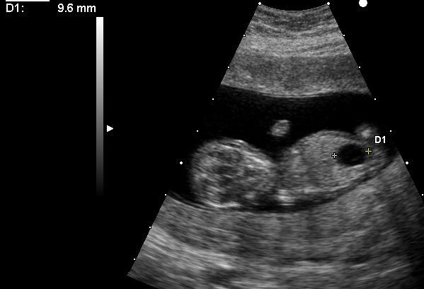 Méga vessie chez un embryon porteur d'une trisomie 21.Megacystis in embryo with Down'syndrome.