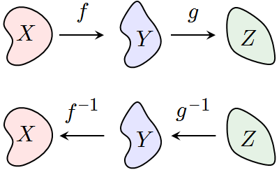 The inverse of a composition is the composition of the inverses, but in the reverse order. |