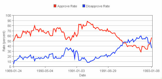 English: Bush approval ratings. Gallup job performance rating. Source: Roper Centre.