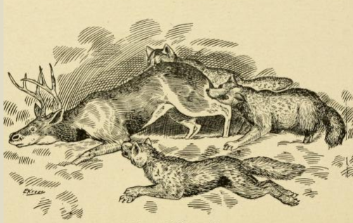 English: Wolves killing caribou