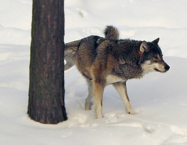 Español: Lobo marcando su territorio mediante sus fluidos corporales. Zoo de Kolmården (Suecia).
