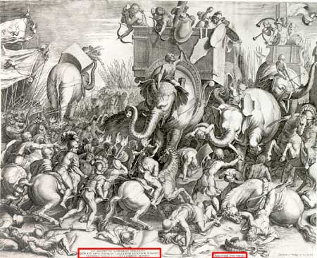 English: Battle of Zama, 202 B.C. Painted by Cornelis Cort, 1567.