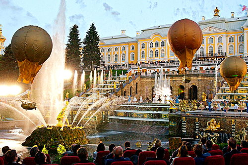 Русский: ПЕТЕРГОФ. Водно-музыкальное представление «Феерия петергофских фонтанов».