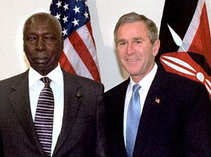 English: Daniel arap Moi, the President of Kenya, and George W. Bush, the President of the United States at the United Nations Headquarters in New York City, New York, USA
