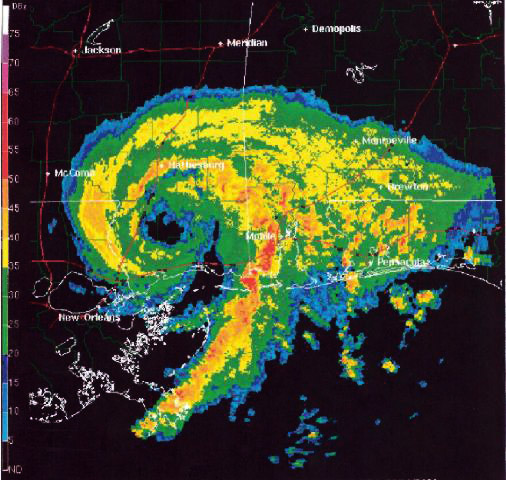 Radar image of Tropical Storm Allison in June of 2001 with an eye feature |