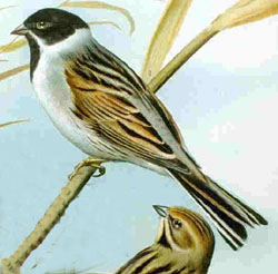 English: Reed Bunting from old German enc scan from " NAUMANN, NATURGESCHICHTE DER VÖGEL MITTELEUROPAS: Band III, Tafel 25 - Gera, 1900".