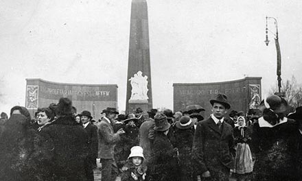 English: The Heroes Square of Budapest in 1919. The Communists wanted to replace or destroy all Hungarian historical monuments and national symbols in Hungary.