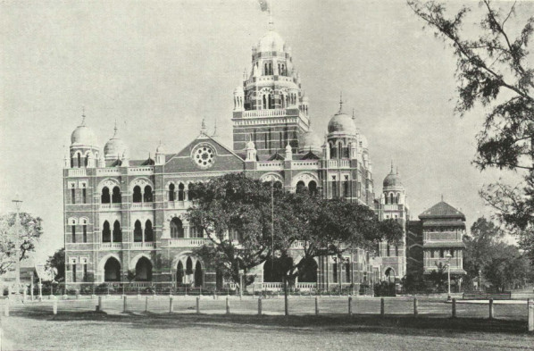 English: Partially destroyed by fire the night the Prince of Wales left Bombay, Nov. 1906.