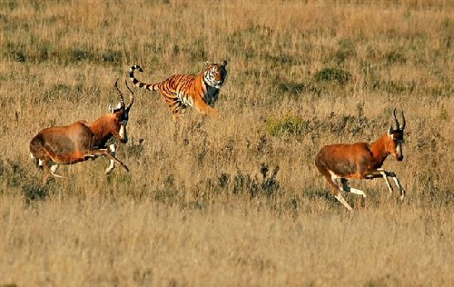 Transferred from en.wikipedia; transferred to Commons by User:Adrignola using CommonsHelper. (Original text : Save China's Tiger, http://english.savechinastigers.org/v/Tigers+in+action/283+TigerWoods+chasing+the+blesbok.jpg.html) |