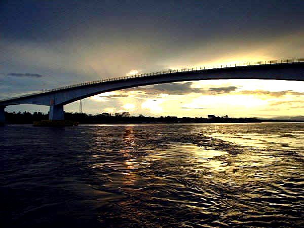 Español: Atardecer sobre el rio Magdalena y vista del puente que comunica los departamentos de Antioquia y Santander