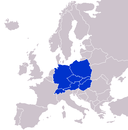 English: Map of Central Europe based on the definition in Columbia Encyclopedia (article title:Europe)