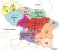 1: od 833 do 907: Moravské kniežatstvo 2: od 833 do 907: Nitrianske kniežatstvo 3: spolu s 2 alebo spolu s 4 4: od 833 alebo od vlády Rastislava do (?)896: Nitrianske kniežatstvo 5: spolu s 1 alebo od roku 853/54 do (?)907: Moravské kniežatstvo 6: od roku 858 do (?)894: Nitrianske kniežatstvo 7: spolu s 2 alebo spolu s 22: 8: spolu s 6 alebo spolu s 20 9: od vlády Rastislava (846-870) alebo Svätopluka I. (871-894) do 896: Nitrianske kniežatstvo 10: spolu s 8 alebo spolu s 20 11: od 874 do (?) 907: Visliansko 12: pravdepodobne spolu s 11 13: od 880 do ?: Sliezsko (podľa niektorých názorov nebolo pripojené) 14: pravdepodobne spolu s 14 15: od 890 do 897: Lužica 16: veľmi pravdepodobne spolu s 15 17: veľmi pravdepodobne spolu s 15 18: pravdepodobne spolu s 15-17 19: od 888/890 do 894: Čechy 20: od 883/884 do 894: Panónske kniežatstvo 21: veľmi pravdepodobne spolu s 20 22: spolu s 20 (a 21): možno Panónske kniežatstvo 23: od 881/882 do 896: Zátisie 24: pravdepodobne spolu s 23 25: od vlády Svätopluka (871-894) do (?) 896 26: od vlády Svätopluka (871-894) do ?27: spolu s 23 alebo spolu s 24