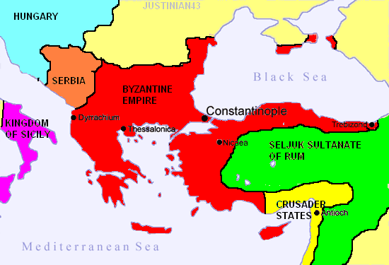 Map of the Byzantine Empire and Crusader States after the First Crusade in the 1090s |