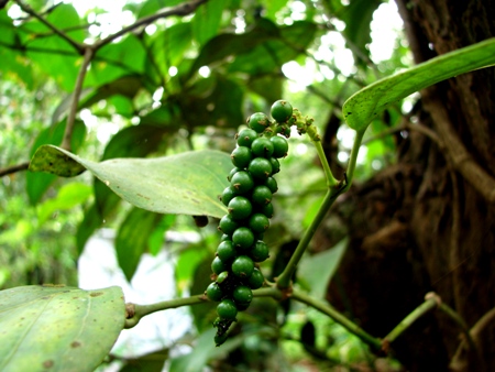 English: Pepper yet to be ripened, taken by me at our farm in Kerala. This is one of the closeup shots of this cash crop.