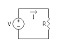 A voltage source, V, driving a resistor, R, and creating an electric current I.