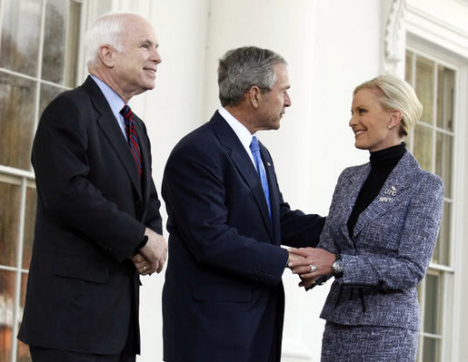 Republican presidential nominee Senator John McCain with President George W. Bush at the White House, Wednesday, March 5, 2008. |