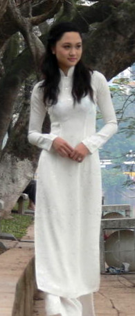 This is a retouched picture, which means that it has been digitally altered from its original version. Modifications: cropped, colour is auto-ajusted. The original can be viewed here: Áo_dài,_Hồ_Gươm.jpg. Modifications made by Kauffner.