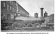 The 2-6-0 "Mogul", first created in the early 1860s, is often considered as the logical forerunner to the 2-8-0. However, there is also a claim that the first true 2-8-0 engine evolved from the 0-8-0 and was ordered by the USA’s Lehigh and Mahanoy Railroad, who named all its engines. The name given to the new locomotive was "Consolidation", the name that was later almost globally adopted for the type. According to this viewpoint, the first 2-8-0 order by Lehigh dates to 1866 and predates the adoption of the type by other railways and coal and mountain freight haulers.