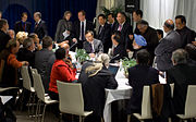 George Monbiot blamed the failure of the conference to achieve a binding deal on the United States Senate and Barack Obama. By negotiating the Copenhagen Accord with only a select group of nations, most of the UN member states were excluded. If poorer nations did not sign the Accord then they would be unable to access funds from richer nations to help them adapt to climate change. He noted how the British and American governments have both blamed China for the failure of the talks but said that Obama placed China in "an impossible position" - "He demanded concessions while offering nothing." Martin Khor blamed Denmark for convening a meeting of only 26 nations in the final two days of the conference. He says that it undermined the UN's multilateral and democratic process of climate negotiations. It was in these meetings that China vetoed long-term emission-reduction goals for global emissions to decrease by 50%, and developed countries emissions to fall by 80% by 2050 compared to 1990. Khor states that this is when other countries began to blame the failures on China. If China had accepted this, by 2050 their emissions per capita would have had to be around one half to one fifth per capita of those of the United States.