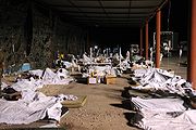 Almost immediately Port-au-Prince's morgue facilities were overwhelmed. By 14 January, a thousand bodies had been placed on the streets and pavements. Government crews manned trucks to collect thousands more, burying them in mass graves. In the heat and humidity, corpses buried in rubble began to decompose and smell. Mati Goldstein, head of the Israeli ZAKA International Rescue Unit delegation to Haiti, described the situation as " Shabbat from hell. Everywhere, the acrid smell of bodies hangs in the air. It’s just like the stories we are told of the Holocaust – thousands of bodies everywhere. You have to understand that the situation is true madness, and the more time passes, there are more and more bodies, in numbers that cannot be grasped. It is beyond comprehension."
