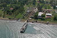 The helicopter carrier USS Bataan sailed with three large dock landing ships and two survey/salvage vessels, to create a "sea base" for the rescue effort. They were joined by the French Navy vessel Francis Garnier on 16 January, the same day the hospital ship USNS Comfort and guided-missile cruiser USS Bunker Hill left for Haiti. Another large French vessel was later ordered to Haiti, the amphibious transport dock Siroco.