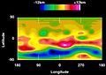 Elevation diagram of 4 Vesta (as determined from Hubble Space Telescope images of May 1996) viewed from the south-east, showing Rheasilvia crater and an unnamed basin
