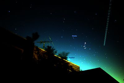In 2010, Vesta reached opposition in the constellation of Leo on the night of 17–18 February, at about magnitude 6.1, a brightness that makes it visible in binocular range but not for the naked eye. Under perfect dark sky conditions where all light pollution is absent it might be visible to an experienced observer without the use of a telescope or binoculars. Vesta came to opposition again on 5 August 2011, in the constellation of Capricornus at about magnitude 5.6.