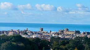 Aberystwyth has a pier and a fine seafront which stretches from Constitution Hill at the north end of the Promenade to the mouth of the harbour at the south, taking in two separate beach stretches divided by the castle. Today it is essentially made up by a number of different areas: Aberystwyth town, Llanbadarn Fawr, Waunfawr, Penparcau, Llanbadarn and Trefechan, with Penparcau being the most populous.