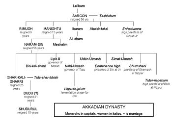 One strategy adopted by both Sargon and Naram-Sin, to maintain control of the country, was to install their daughters, Enheduanna and Emmenanna respectively, as high priestess to Sin, the Akkadian version of the Sumerian moon deity, Nanna, at Ur, in the extreme south of Sumer; to install sons as provincial ensi governors in strategic locations; and to marry their daughters to rulers of peripheral parts of the Empire ( Urkesh and Marhashe). A well documented case of the latter is that of Naram-Sin's daughter Tar'am-Agade at Urkesh.