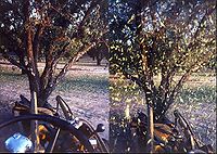 | Almond tree with ripening fruit. Mallorca, Spain. | |