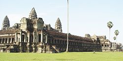 Angkor Wat (or Angkor Vat) is a temple at Angkor, Cambodia, built for King Suryavarman II in the early 12th century as his state temple and capital city. As the best-preserved temple at the site, it is the only one to have remained a significant religious centre since its foundation—first Hindu, dedicated to Vishnu, then Buddhist. The temple is the epitome of the high classical style of Khmer architecture. It has become a symbol of Cambodia, appearing on its national flag, and it is the country's prime attraction for visitors.