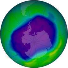 In September 2006, NASA satellite data revealed that the Antarctic ozone hole was larger than at any other time on record, 27.5 million km2 (10.6 million sq mi).