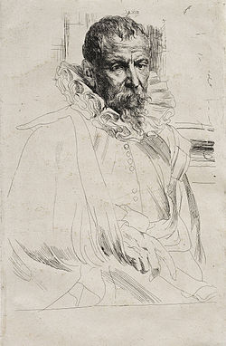 Probably during his period in Antwerp after his return from Italy, van Dyck began his Iconography, eventually a very large series of prints with half-length portraits of eminent contemporaries. Van Dyck produced drawings, and for eighteen of the portraits he himself etched with great brilliance the heads and the main outlines of the figure, for an engraver to work up: "Portrait etching had scarcely had an existence before his time, and in his work it suddenly appears at the highest point ever reached in the art".