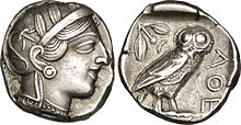 Athena was depicted on the obverse of the Greek 100 drachmas banknote of 1978-2001. Another recent example is the 60 Years of the Second Republic commemorative coin issued by Austria in 2005. Athena is depicted in the obverse of the coin, representing the Austrian Republic.