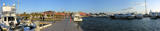 The airport is served by the metro, the suburban rail, buses to Piraeus port, Athens' city centre and it suburbs, and also taxis. Eleftherios Venizelos International Airport accommodates 65 landings and take-offs per hour, with its 24 passenger boarding bridges, 144 check-in counters and broader 150,000 m2 (1,614,587 sq ft) main terminal; and a commercial area of 7,000 m2 (75,347 sq ft) which includes cafes, duty-free shops, and a small museum.