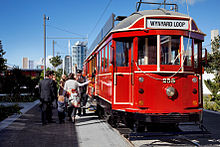 Tram in the Wynyard Quarter on Auckland's waterfront