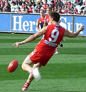 ![]() A ball-up in a game between Essendon and Hawthorn during the 2007 AFL season. |