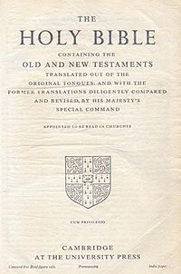 - These translations to be used when they agree better with the text than the Bishops' Bible, viz. Tyndale Bible, Coverdale Bible, Matthew's Bible, Great Bible, Geneva Bible. (Influence from Taverner's Bible and the New Testament of the Douai-Rheims Bible can also be detected, but the Douai Old Testament was published too late to have any effect.)